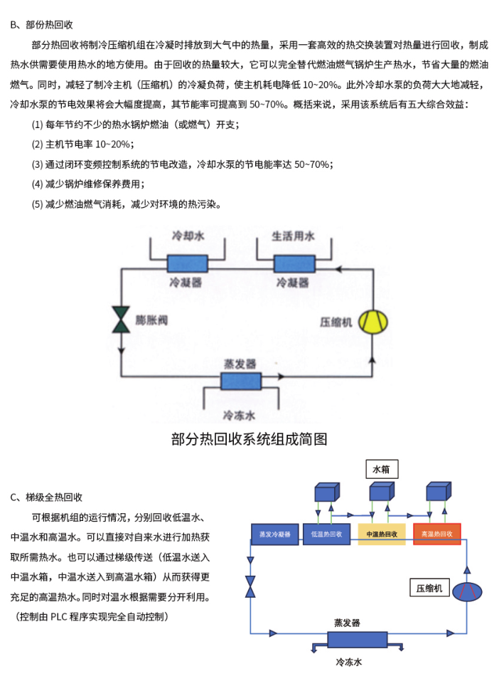全热回收,可以用来烘干、清洗、卫生热水。可以做到热量梯级利用,为企业降低运营成本。